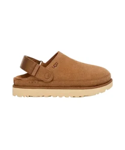 The Ugg Womens’ Goldenstar Clog blends easy comfort with a stylish, modern look. Crafted from soft suede with a lightweight sole adding support, these clogs perfect for everyday wear. The adjustable velcro strap can be worn at the heel for a secure fit or pushed forward for an easy slip-on style. The A versatile clog that pairs effortlessly with any casual outfit.