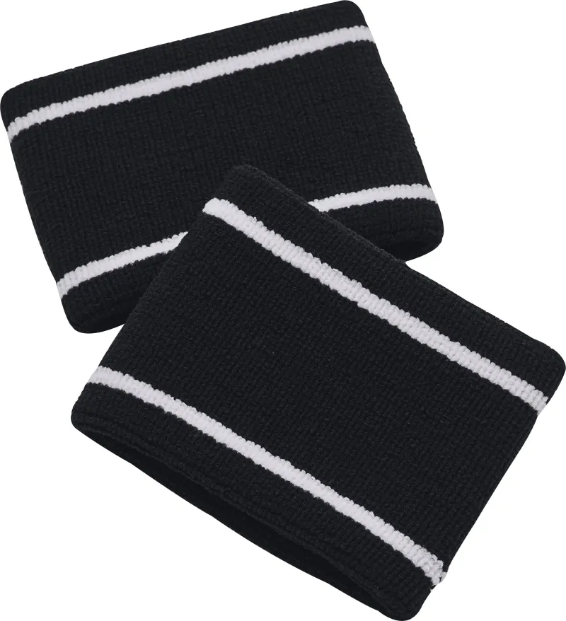 Under Armour Striped Performance Terry sweatbands are made of high-quality, highly absorbent material, which securely fix the wrist and handle sweat without any problems. There is an embroidered Under Armor logo on the front.