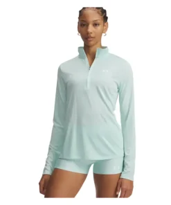 This Under Armour women’s 1/4 zip top is a lightweight, versatile layer designed to keep you comfortable during training or everyday wear. Made from smooth, breathable fabric, it helps regulate body temperature while allowing easy ventilation with the zip neckline. Finished in a fresh mint colour with subtle Under Armour branding for a clean, sporty look.