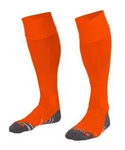 These knee length socks from Stanno are made of ‘high stretch’ polyester, for the best fit. Shin area is extra stretchable for shin pad placement. Mesh area at rear of sock for extra breathability. Around the ankle the sock has a protective impact zone. And to prevent scouring, and therefore blisters, the sock has a flat seem and a reinforced heel, sole and toe. Due to the double elasticated cuff the sock stays in place. These anatomically shaped socks are provided with a left/right fitting indicator.