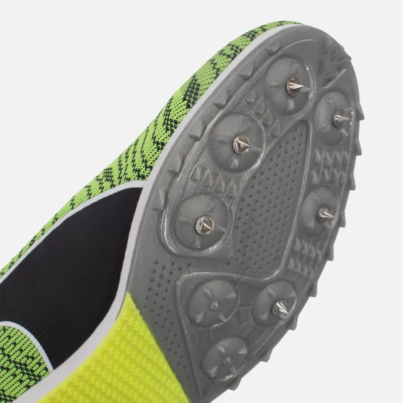 Usain Bolt personally signed Puma running spikes, track style athletic trainers. In neon yellow, black and white with screw in spike studs. Authentic autograph from the greatest sprinter of all time. Trainer signed by the eight time Olympic gold medalist and current 100m and 1000m world record holder.