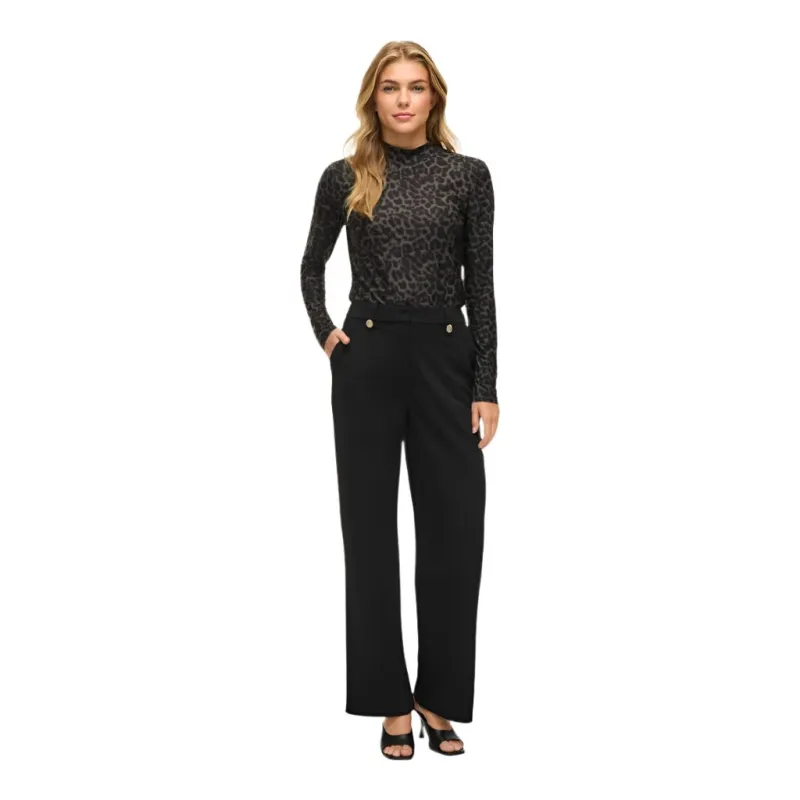 Vila Womens Pants Clua HW Wide Button Black/Gold Button