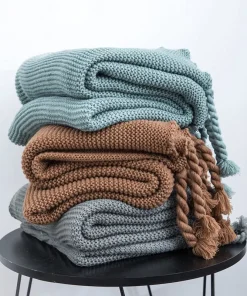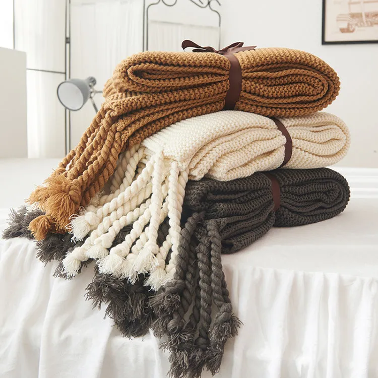 - Comfortable Waffle Knit Blanket with Knotted Tassels
