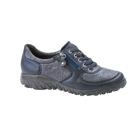 The Waldläufer Havy Trainer combines sophisticated design with exceptional comfort, perfect for all-day wear. Crafted from premium navy leather with a subtle woven-texture pattern, it offers a modern yet timeless look. Designed in a wide fit for enhanced comfort, it provides extra room without compromising style. A functional side zip allows for easy on and off, while the supportive cushioned insole ensures lasting comfort. Finished with a flexible, shock-absorbing sole, this trainer delivers effortless style with every step.