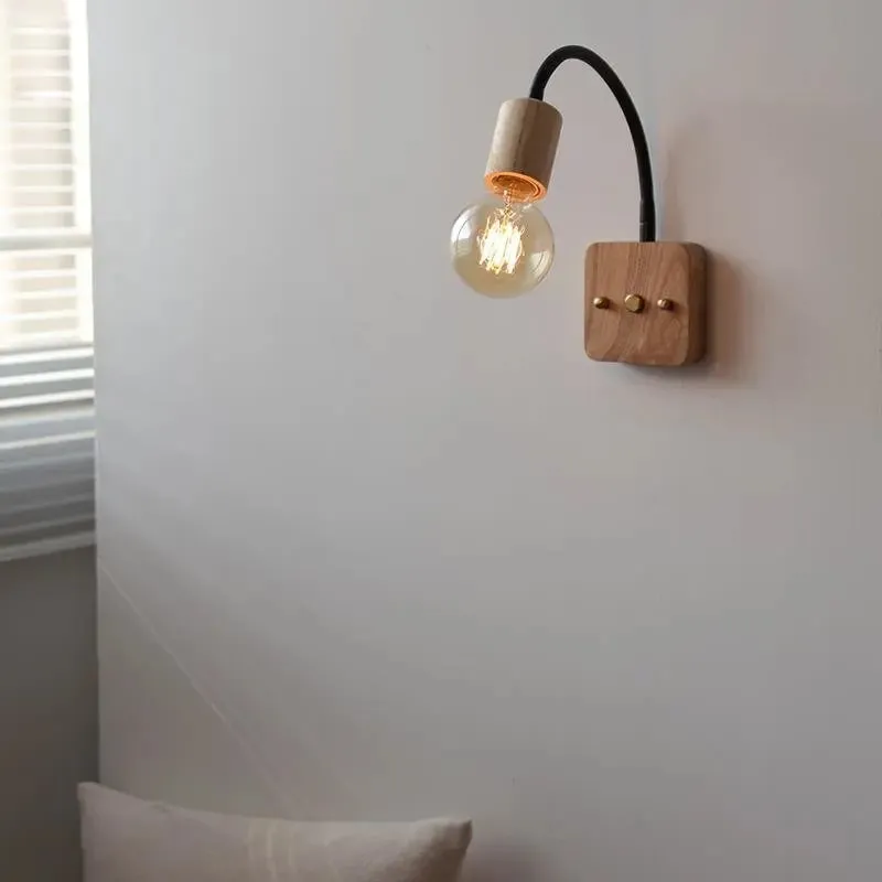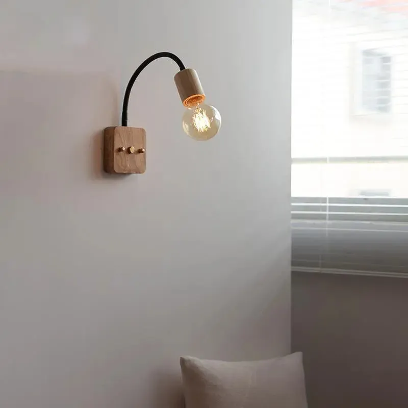 Add warmth and simplicity to your space with the Walnut Wood Adjustable Wall Lamp, a sleek blend of Nordic and minimalist design. Featuring a flexible black arm and a natural walnut wood base, this wall lamp offers both style and functionality. The exposed bulb design complements modern and industrial interiors, making it a perfect choice for bedrooms, hallways, or reading nooks.