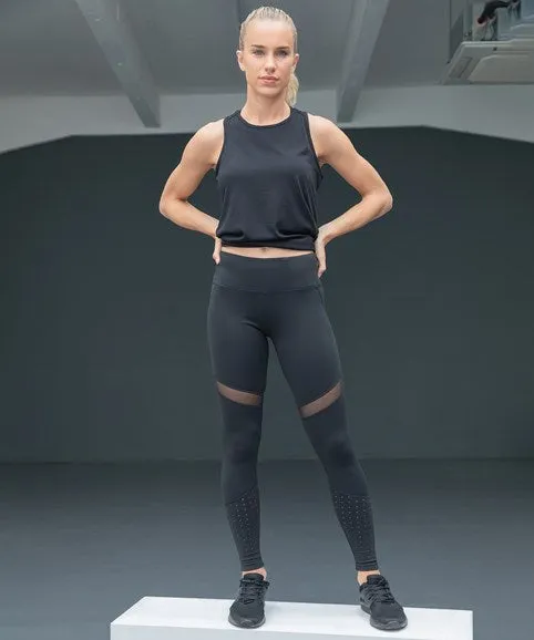 Make a statement with these fashion panelled legging. The on-trend mesh and innovative laser cut panels give superior styling, while the high waistband and opaque fabric make them the perfect squat-proof choice for any workout.