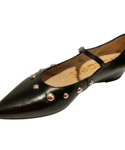 Enjoy the sophistication of a flat yet elegant shoe from Wonders. Designed in a black leather and styled with silver detailing, with a pointed toe. Fastened with a strap over the ankle with an adjustable buckle. The A-3831 shoes are perfect for work or any everyday wear.