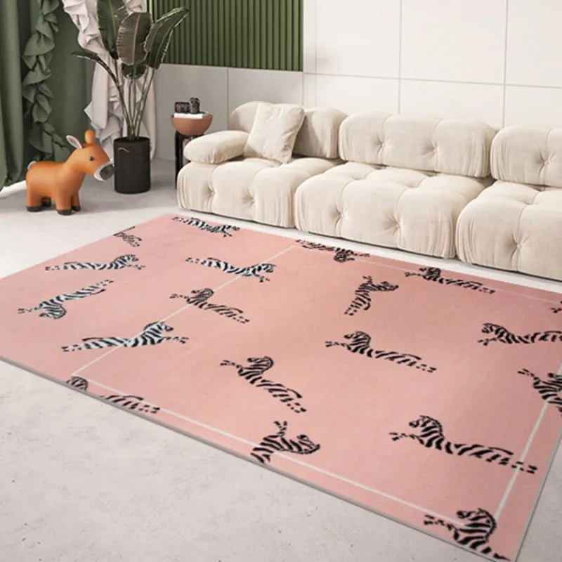 Versatile and adaptable, this rug complements various settings, from commercial spaces to prayer rooms, hotels, and decorative corners. Its American-style grounding adds a touch of charm to any room. Elevate your decor with our Zebra Pattern Rug and experience the perfect blend of contemporary design and ease of care.